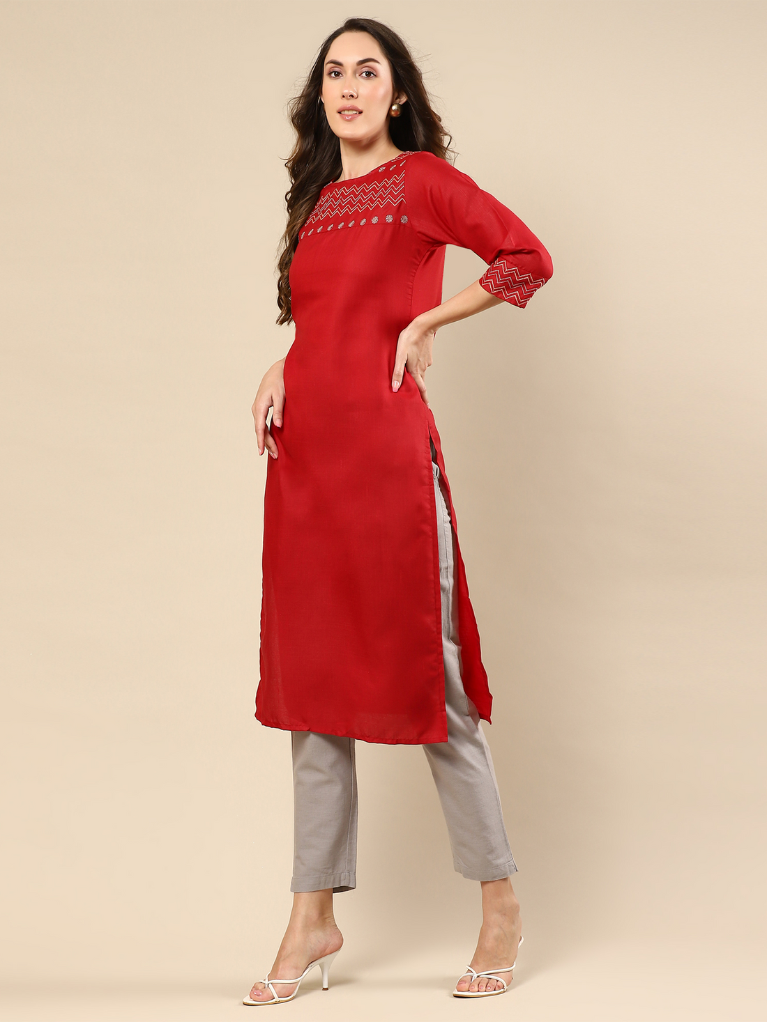 Women Ethnic Motifs Embroidered Mirror Work Kurta with Trousers