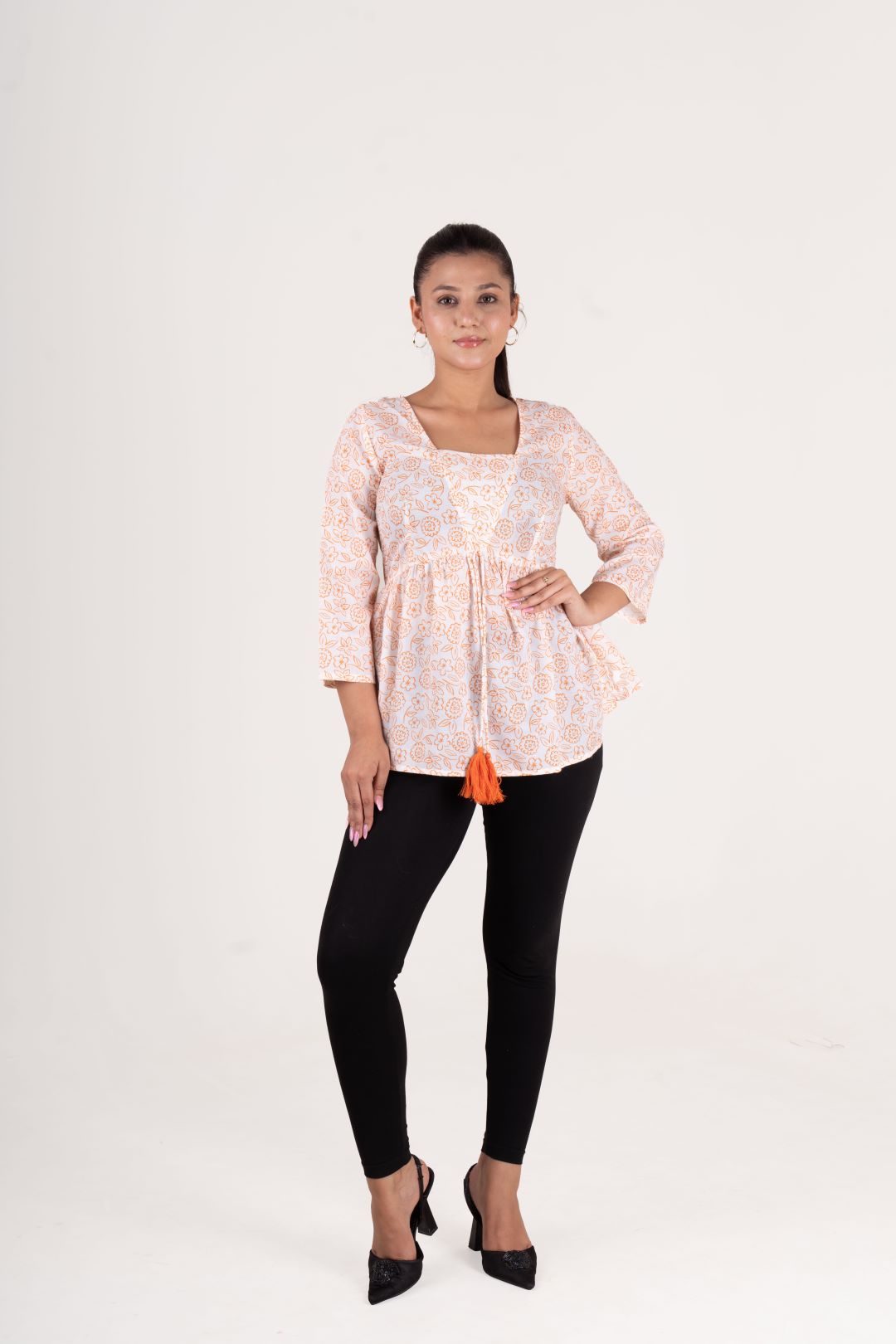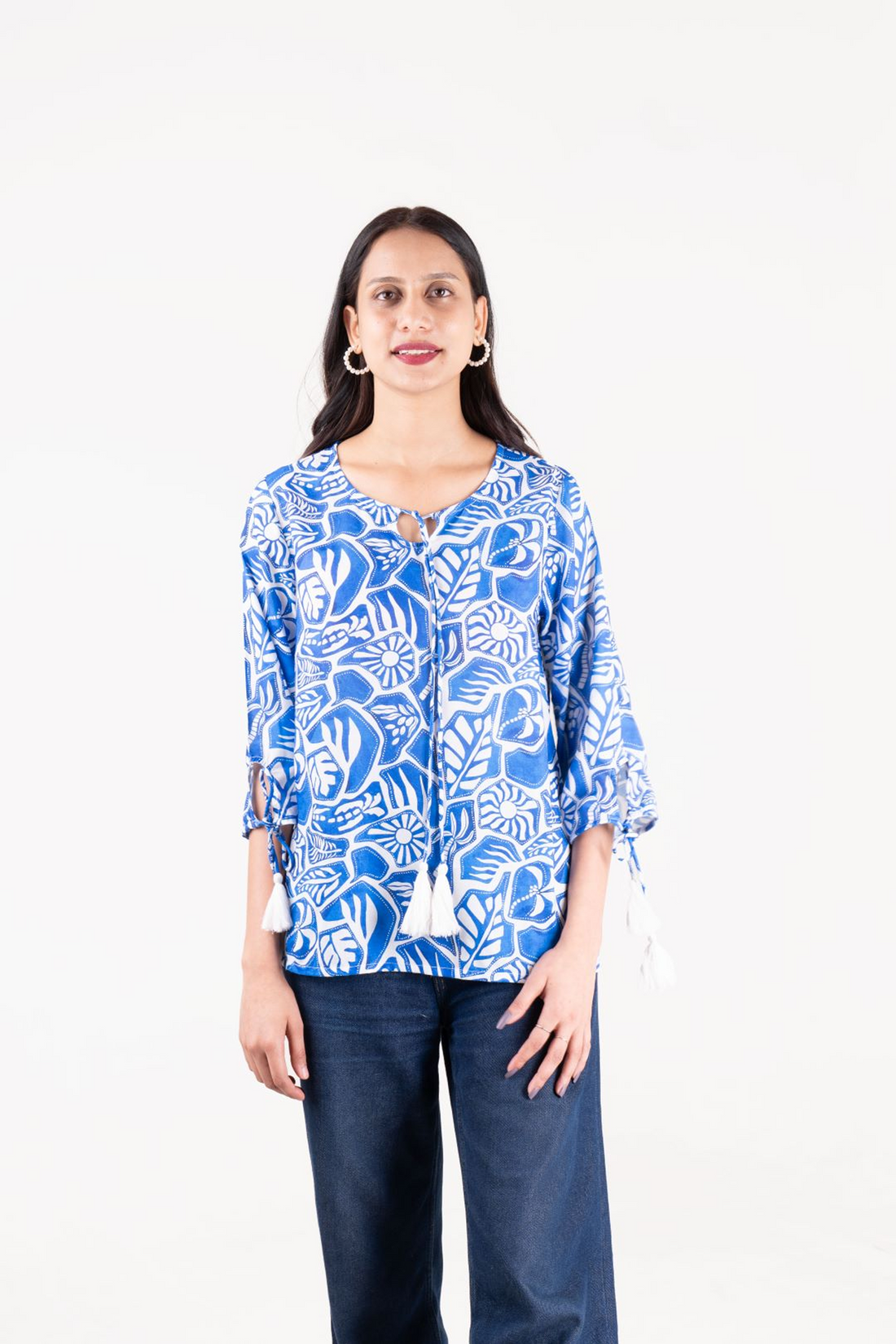 Cotton Printed Top with Tassel