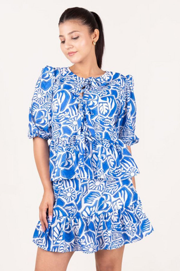 Blue Cotton Printed Top