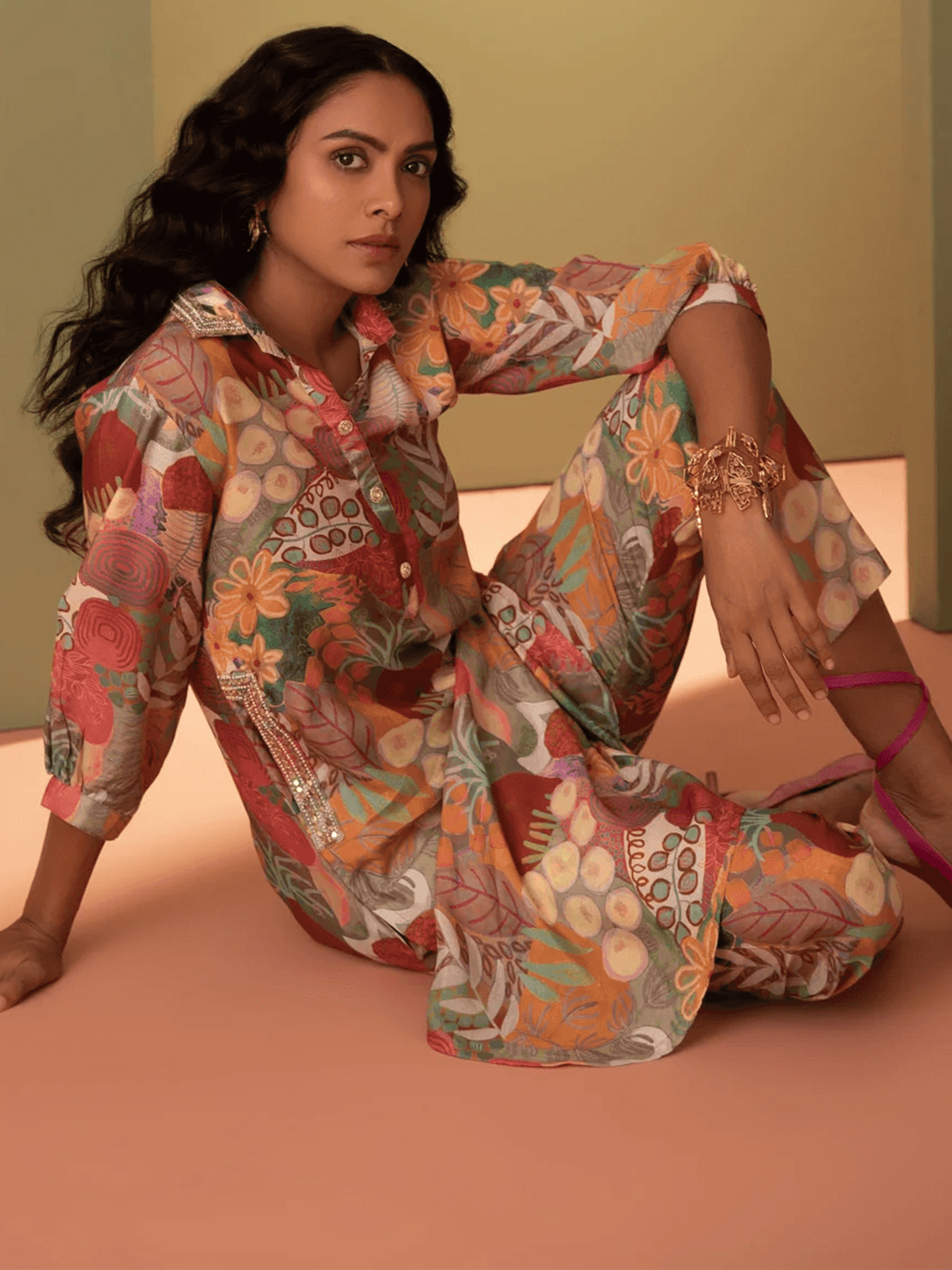 Printed Multi Color Muslin Kurta Set