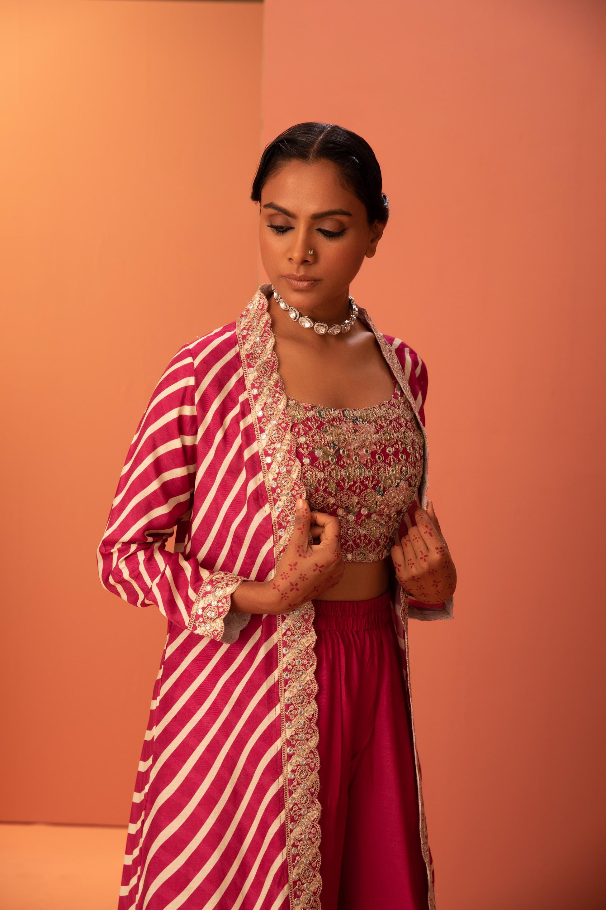 Cotton silk Pink Cape and Palazzo set