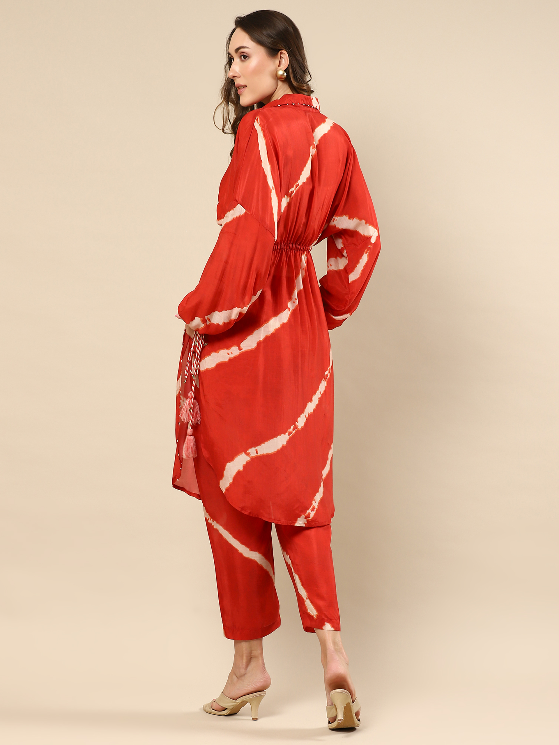 Red Cotton Silk Tunic Set